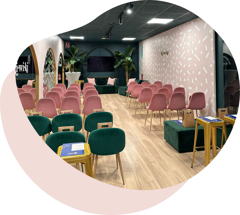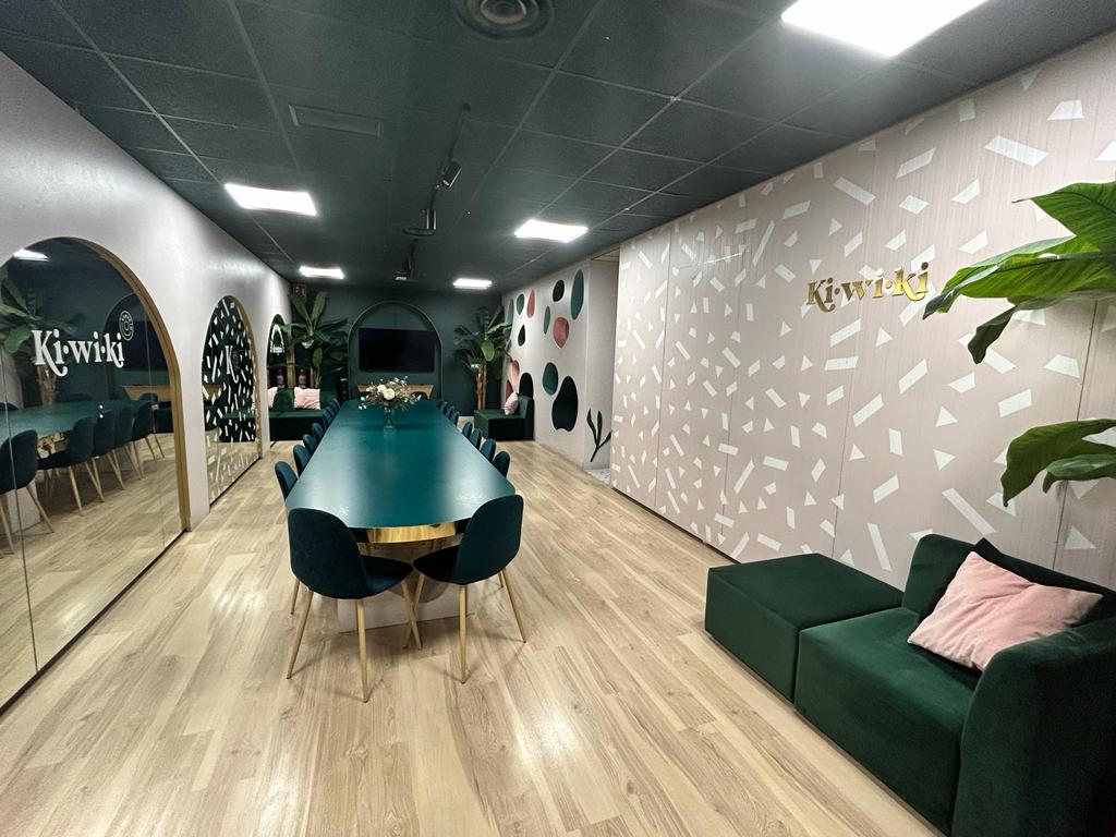 1. Tu Kiwiki: Smart TV de 65” con HDMI, pizarra, WIFI, mesa modulable, zona de descanso, iluminación y acondicionamiento regulable. Tu Momento: Servicio para coffee break, lavabo, frigorífico y microondas.